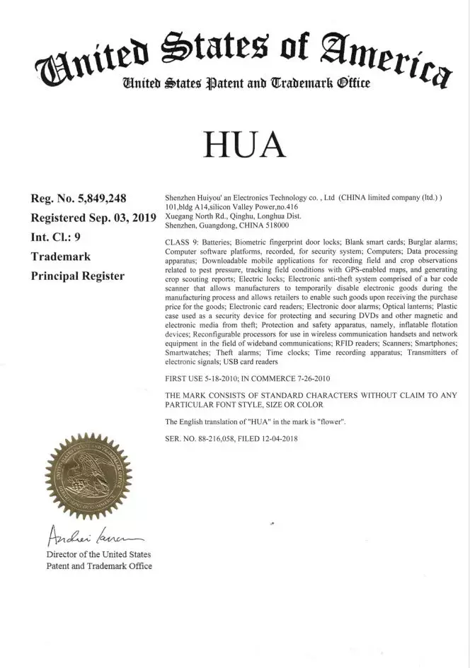 近日,在各方的努力與支持下,慧友安成功取得了“HUA”商標的歐盟、美國商標注冊證書,商標注冊證書的取得,一方面有助于公司在海外加強商標保護,維護公司的知識產(chǎn)權(quán)權(quán)益;另一方面有助于提高公司品牌和國際市場知名度,對開拓國際市場具有積極意義。
